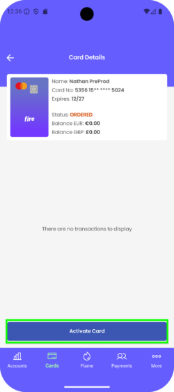 6. Once the card arrives in the post (usually within five business days), select the card from the Cards tab and tap the ‘Activate Card’ button.